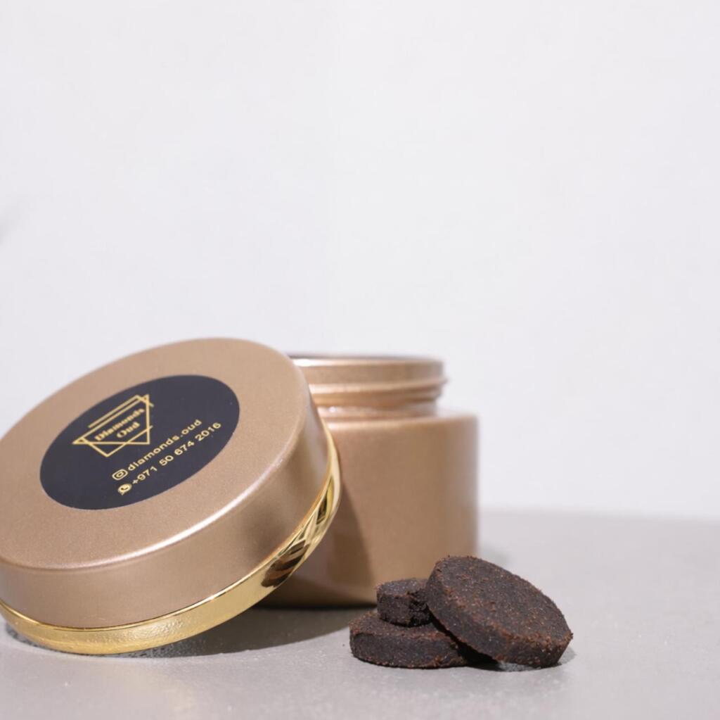 A luxurious French dukhoon crafted with a special blend of seven French oils, releasing a warm, long-lasting scent.