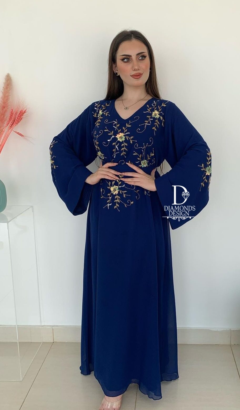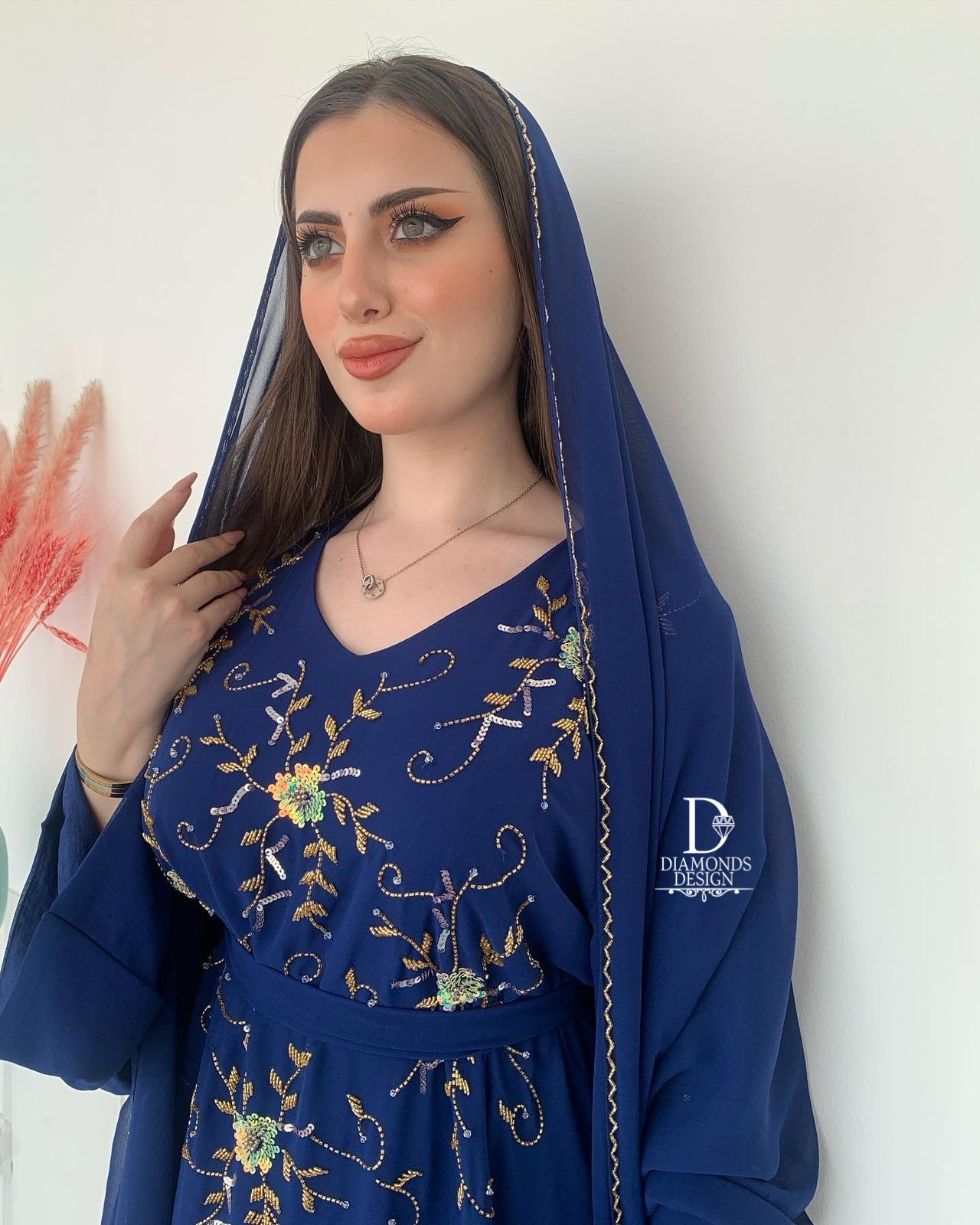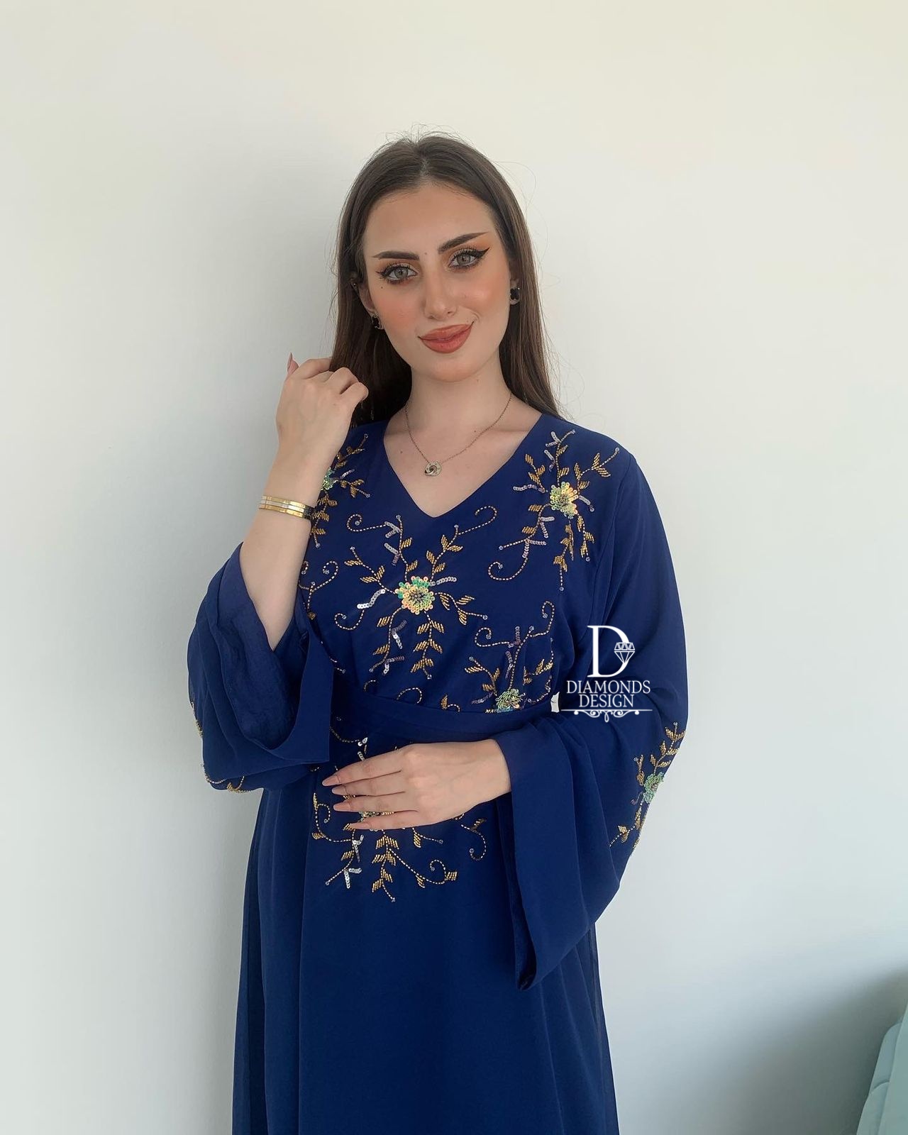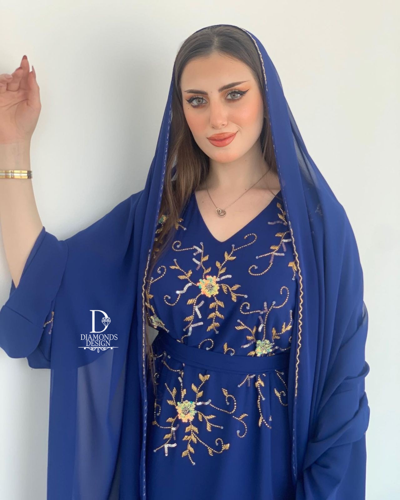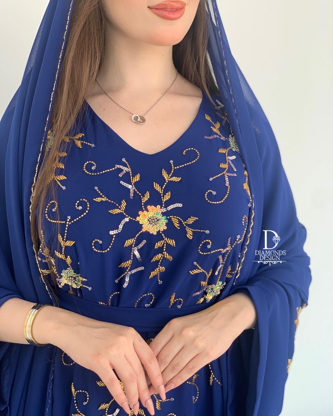 دريس أنيق مطرز بالشك اليدوي مع شيله مطرزة بالشك اليدوي