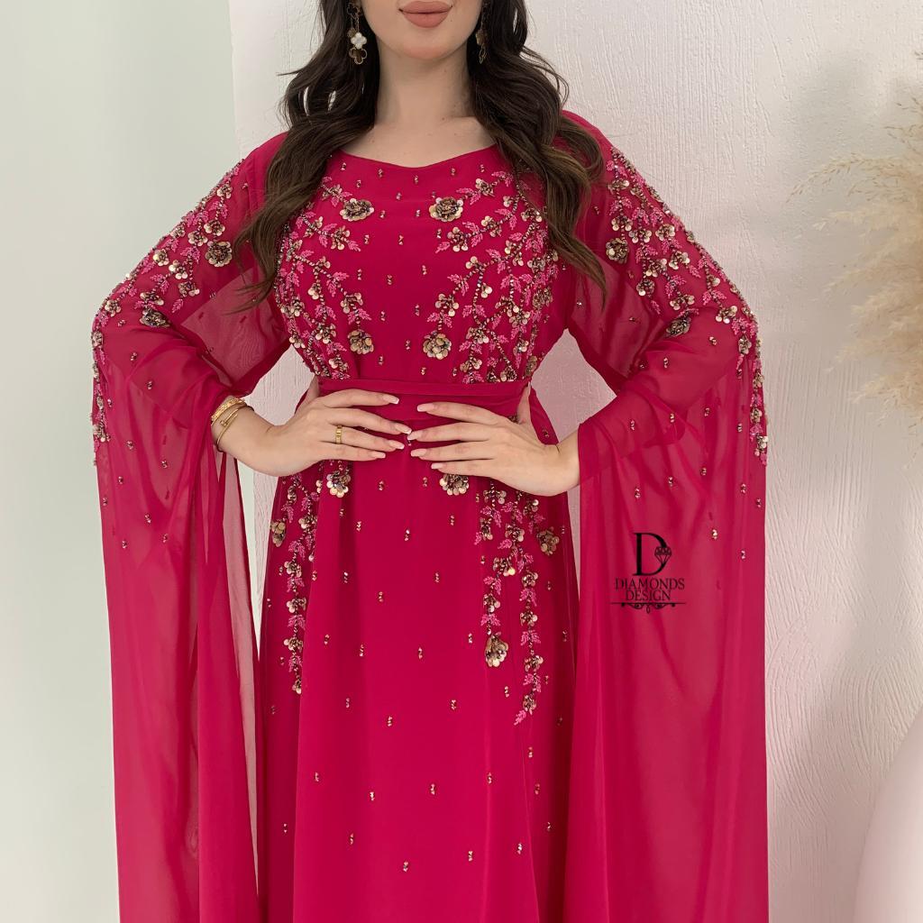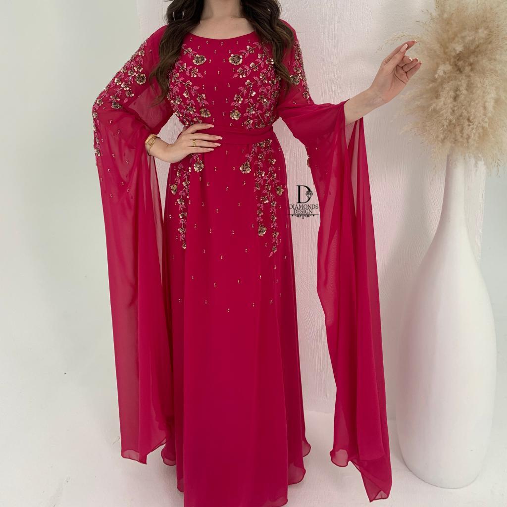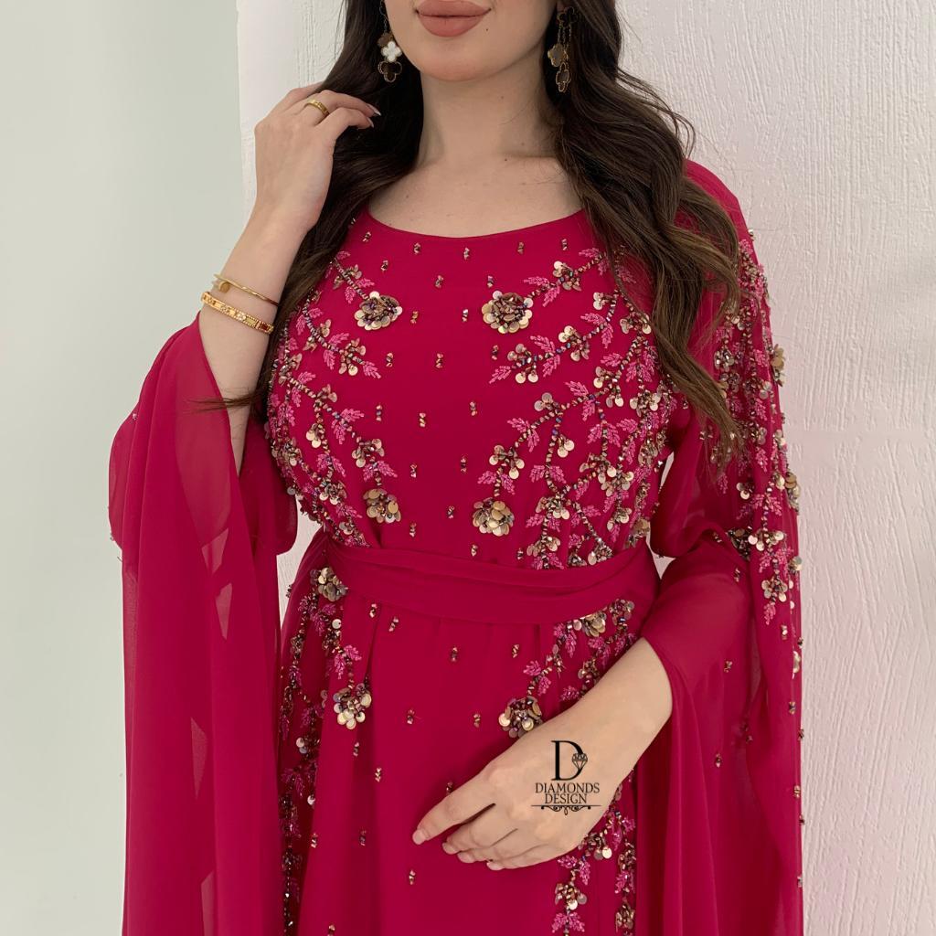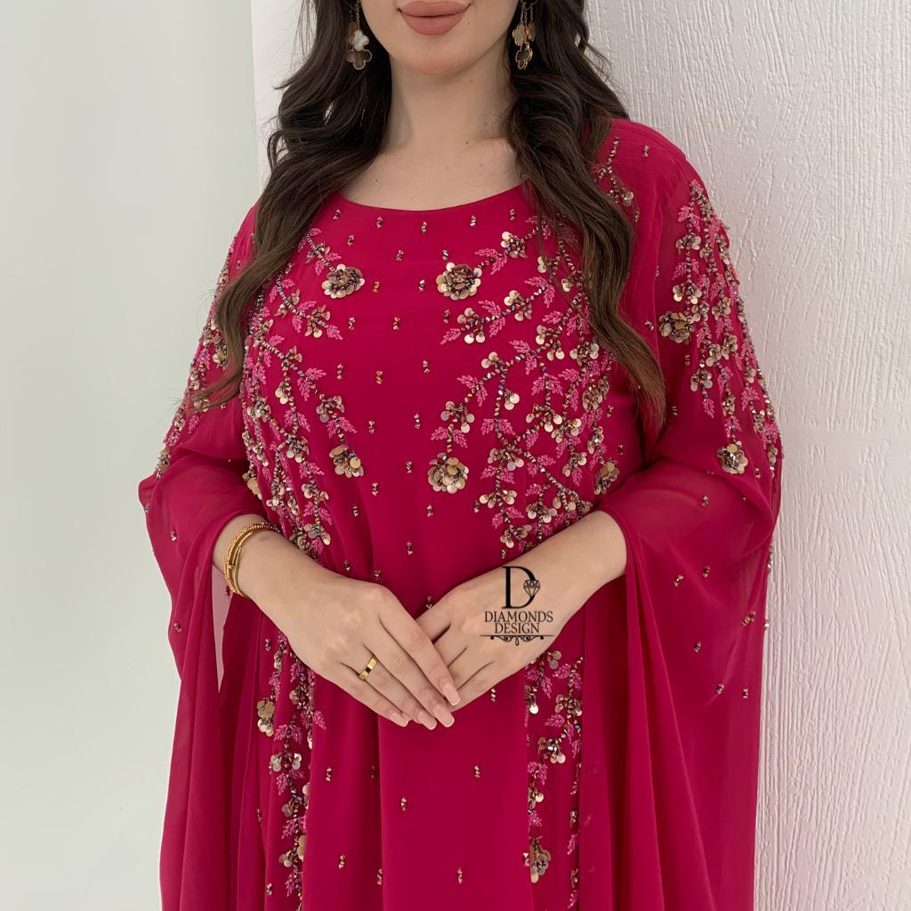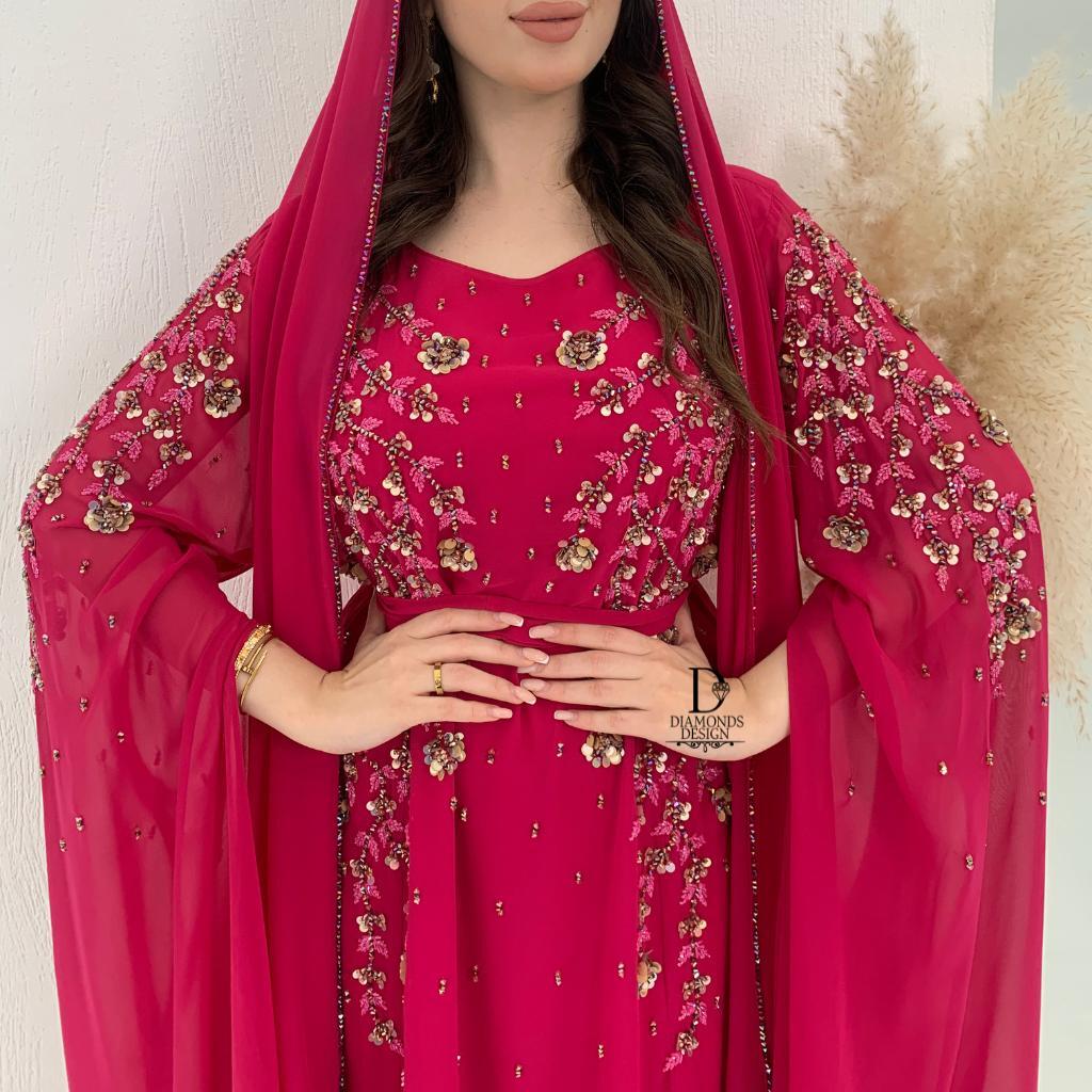 دريس أنيق مطرز بالشك اليدوي مع شيلة مطرزه بالشك اليدوي