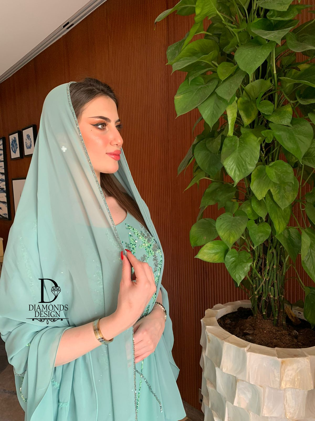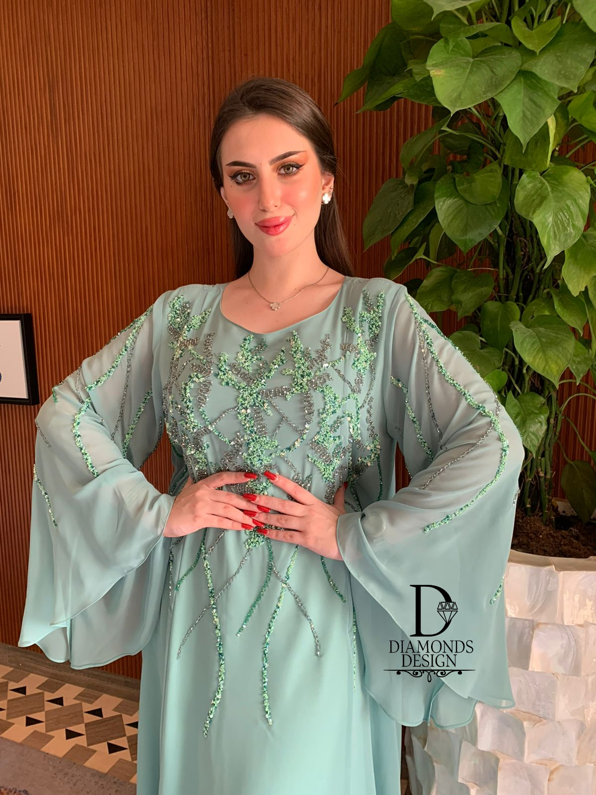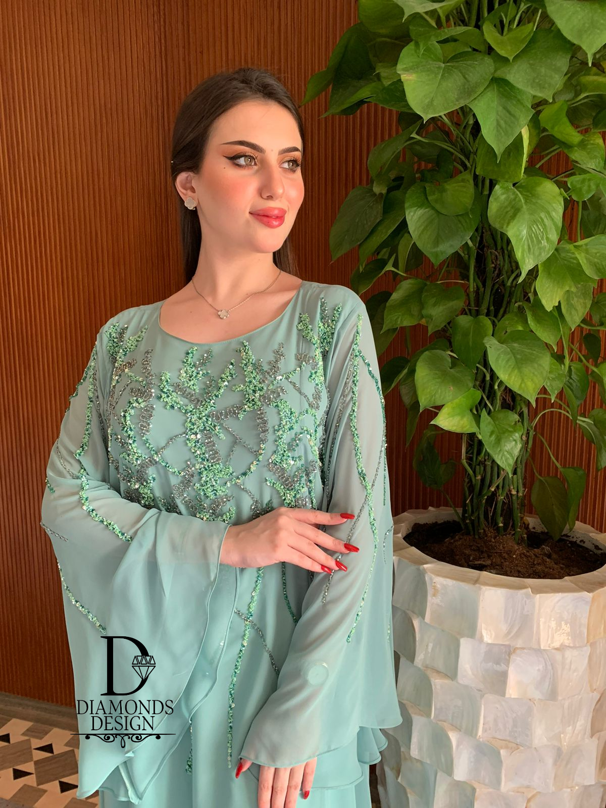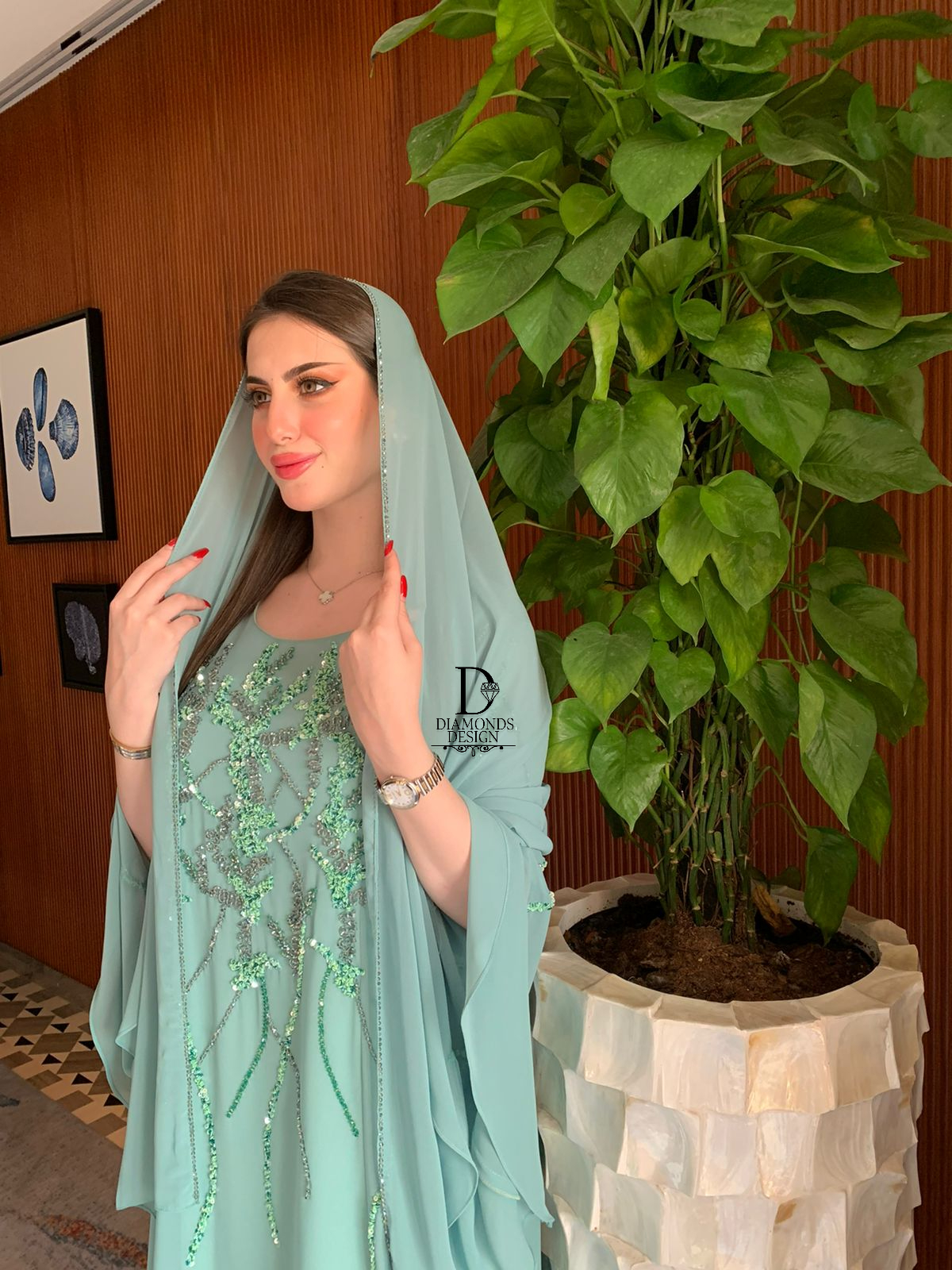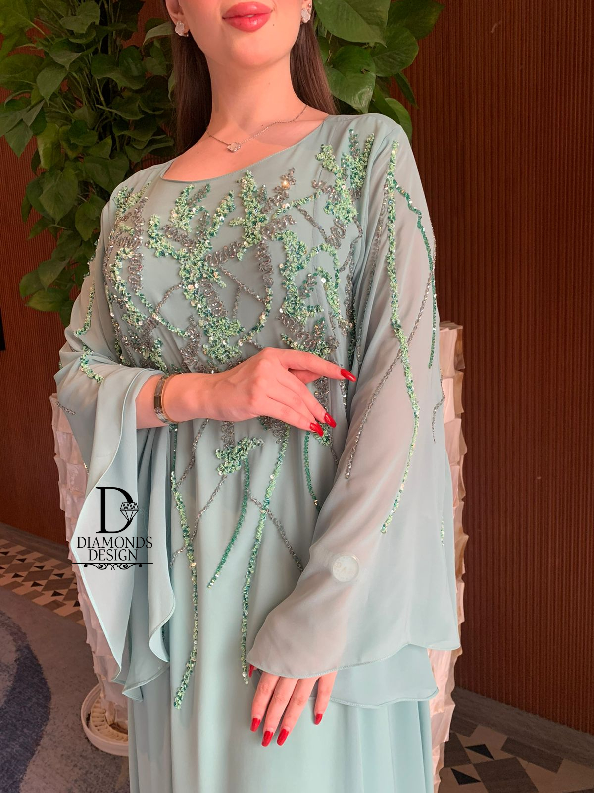 دريس أنيق مطرز بالشك اليدوي مع شيله مطرزة بالشك اليدوي