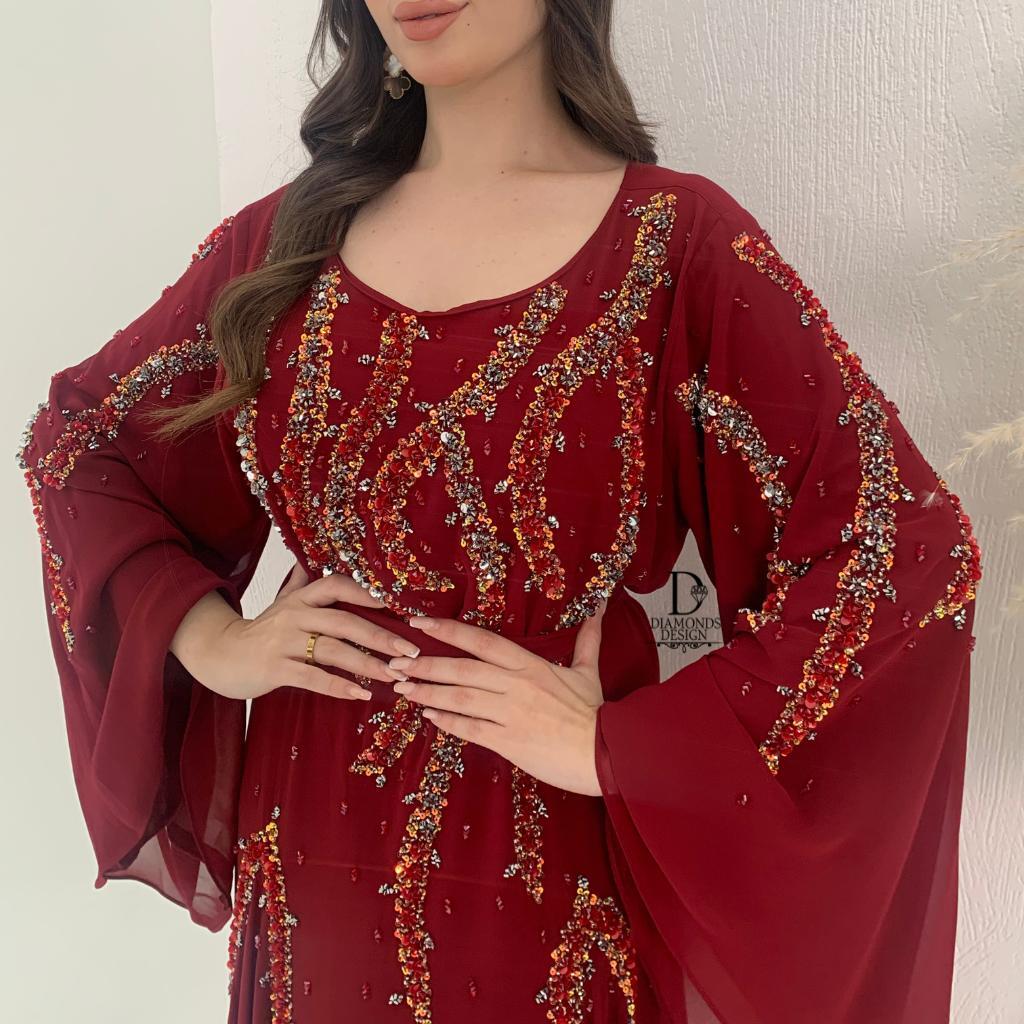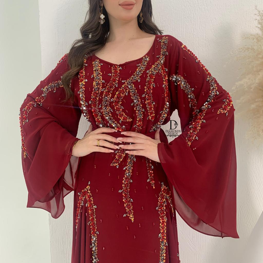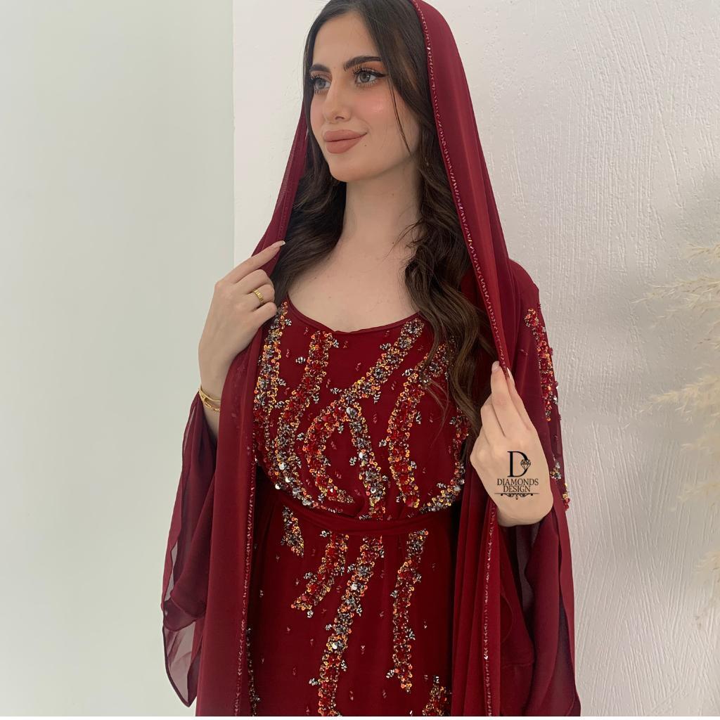 دريس دبل شيفون أنيق مطرز بالشك اليدوي مع شيلة مطرزة