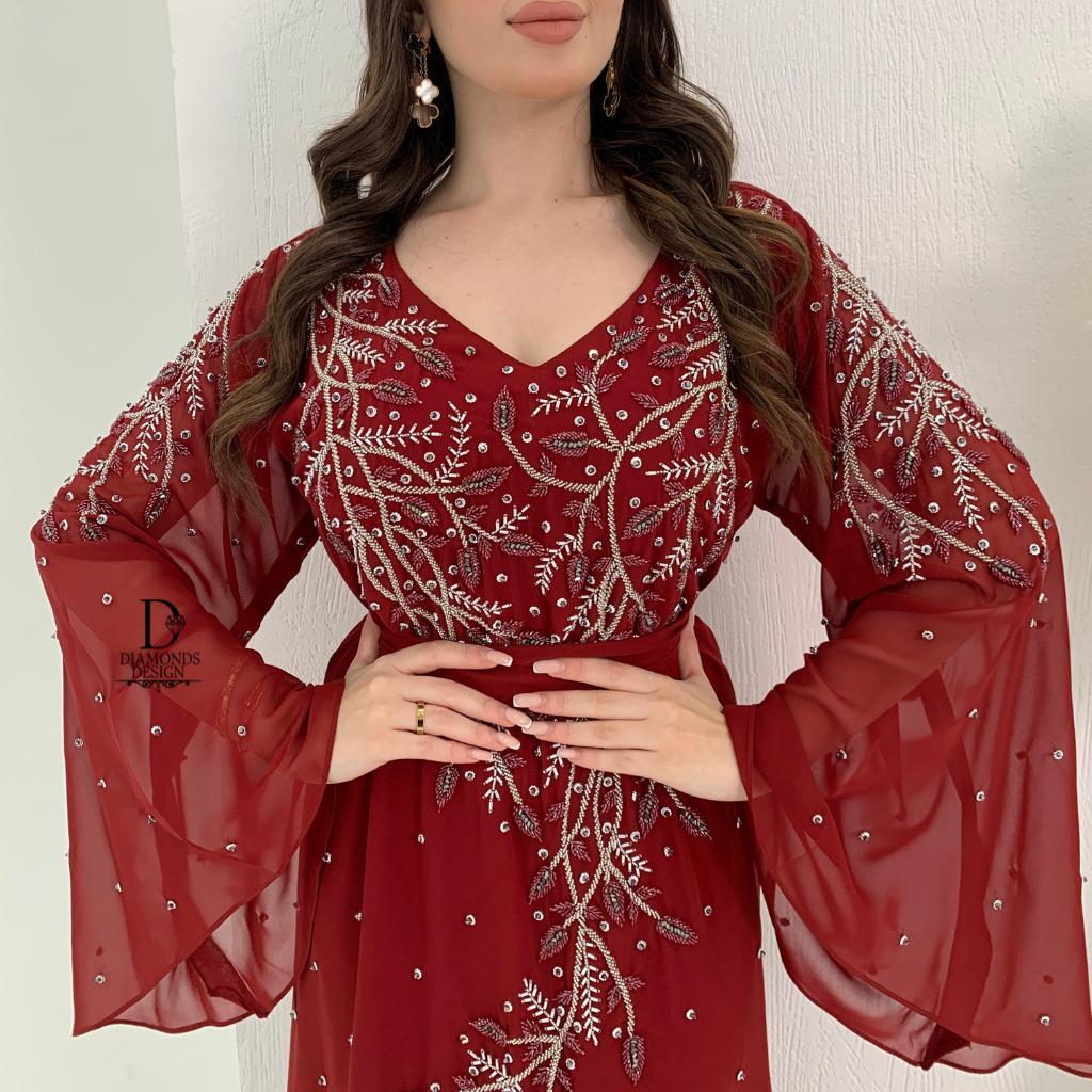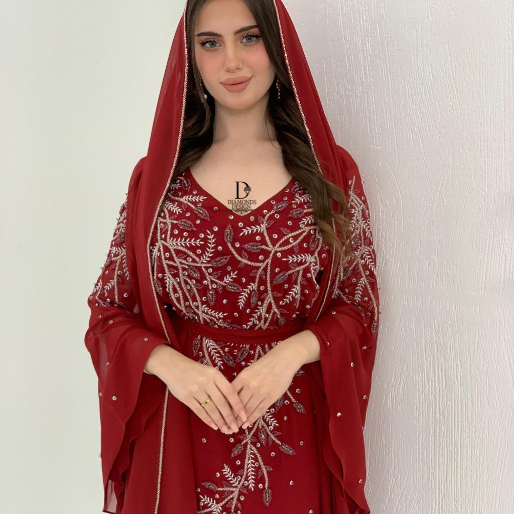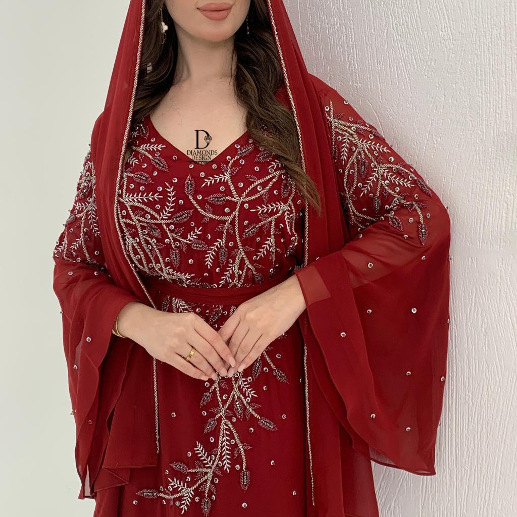 دريس دبل شيفون أنيق مطرز بالشك اليدوي مع شيلة مطرزة